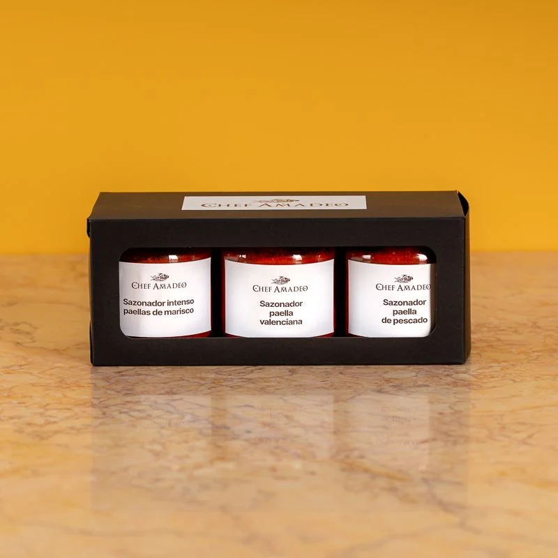 Consigue ese sabor profundo y equilibrado de las mejores arrocerías con nuestro estuche de 3 sazonadores esenciales. En Chef Amadeo hemos seleccionado las mezclas exactas para que, sea cual sea el arroz que elijas, el éxito esté garantizado con mucho menos esfuerzo.
