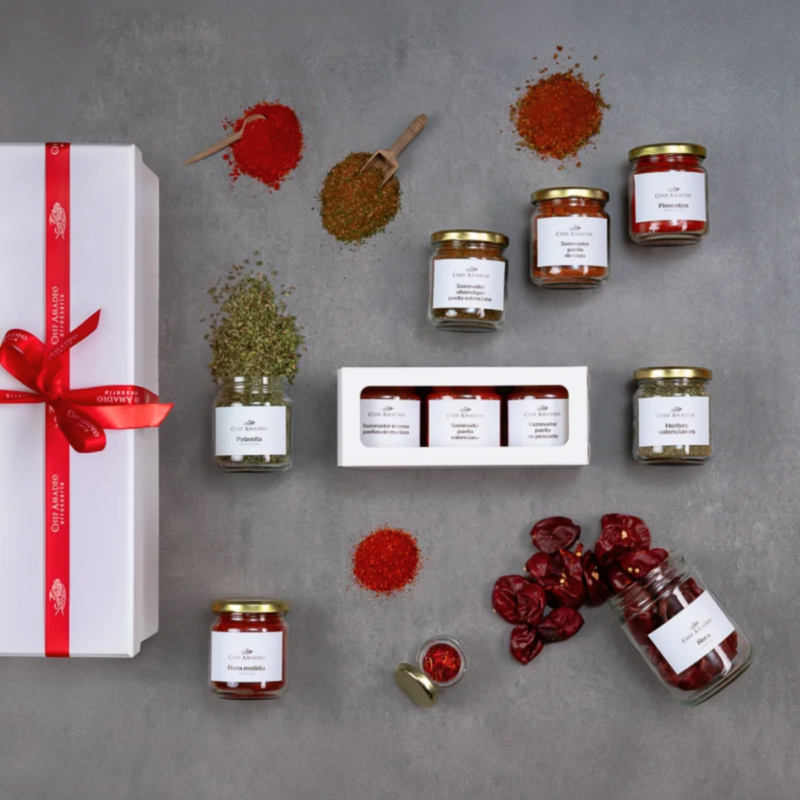 - Estuche Tres Sazonadores: paella valenciana, paella de pescado y paella de marisco intenso